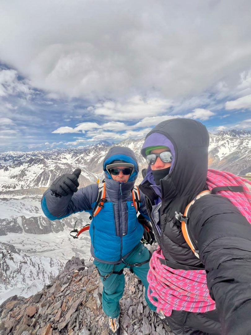 La cordada estuvo compuesta por los escaladores Raimundo de Andraca, guía de alta montaña UIAGM-IFMGA, y Diego Sáez, aspirante a guía de alta montaña UIAGM, que el 1 de noviembre de este año (2025) comenzaron la épica aventura que involucraría pasar dos noches colgados en la pared para completar los 2.300 metros de escalada.