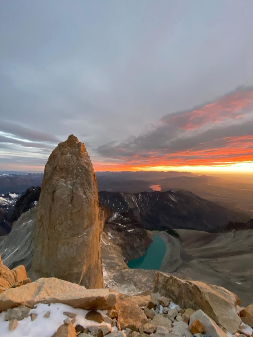 Al otro día partimos con las primeras luces, en uno de los amaneceres más bonitos de mi vida. Salía el sol rojo, lo alumbraba todo con un color muy fuerte y muy bonito. Se veía la laguna que está al frente de las tres Torres del Paine, una vista total por las caras Este y el glaciar, el Valle del Silencio… un momento de disfrute total.