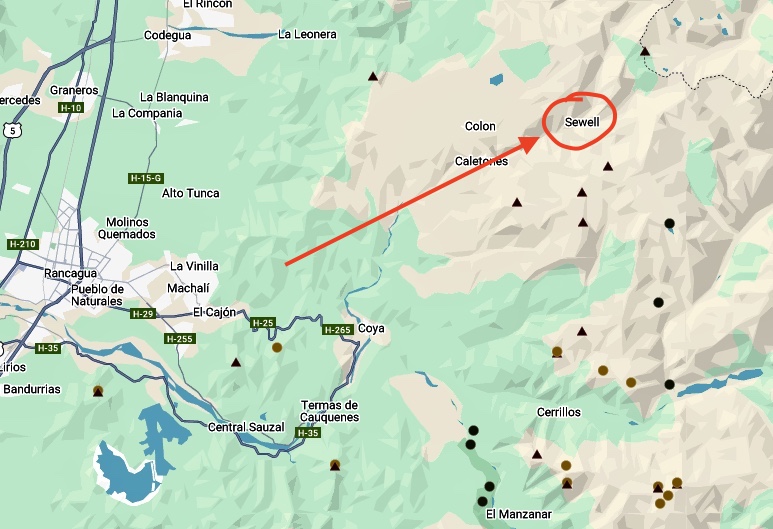 Emplazada en la región del Libertador Bernardo O’Higgins, la ciudad de Sewell llegó a albergar a 15.000 habitantes en 1960, que desde el 1905 operó como refugio permanente para los trabajadores de la mina, quienes se tenían que mover a pie, todo estaba conectado por escaleras que contaba con escuelas, cine, iglesia y hasta piscina temperada.