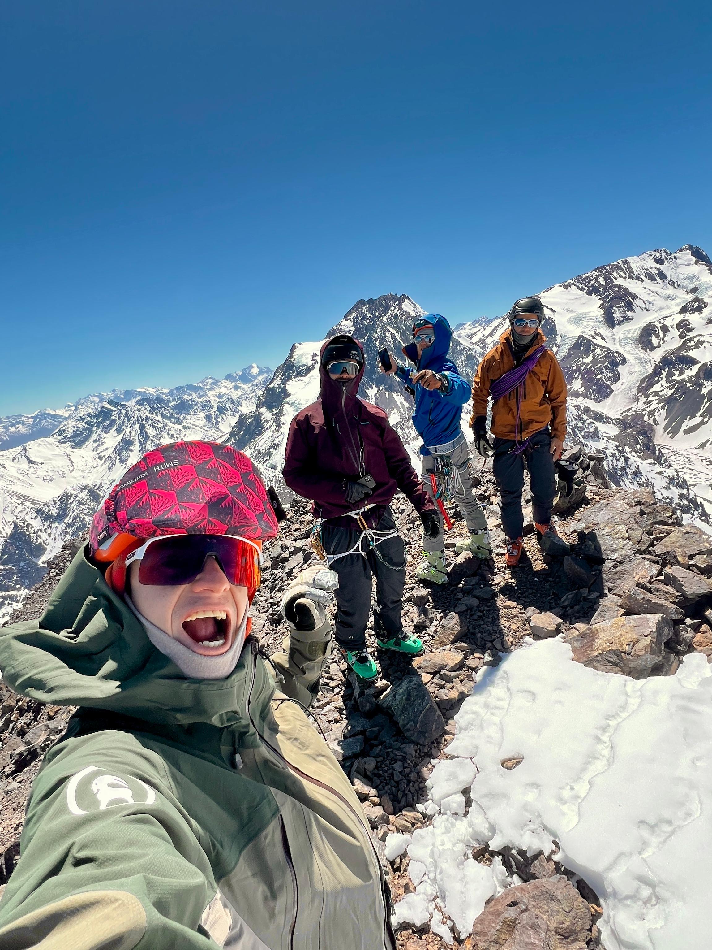 Subida conectada, con pequeñas pasadas en roca y hielo (nada complicado). Nieve profunda en la sección post travers glaciar.