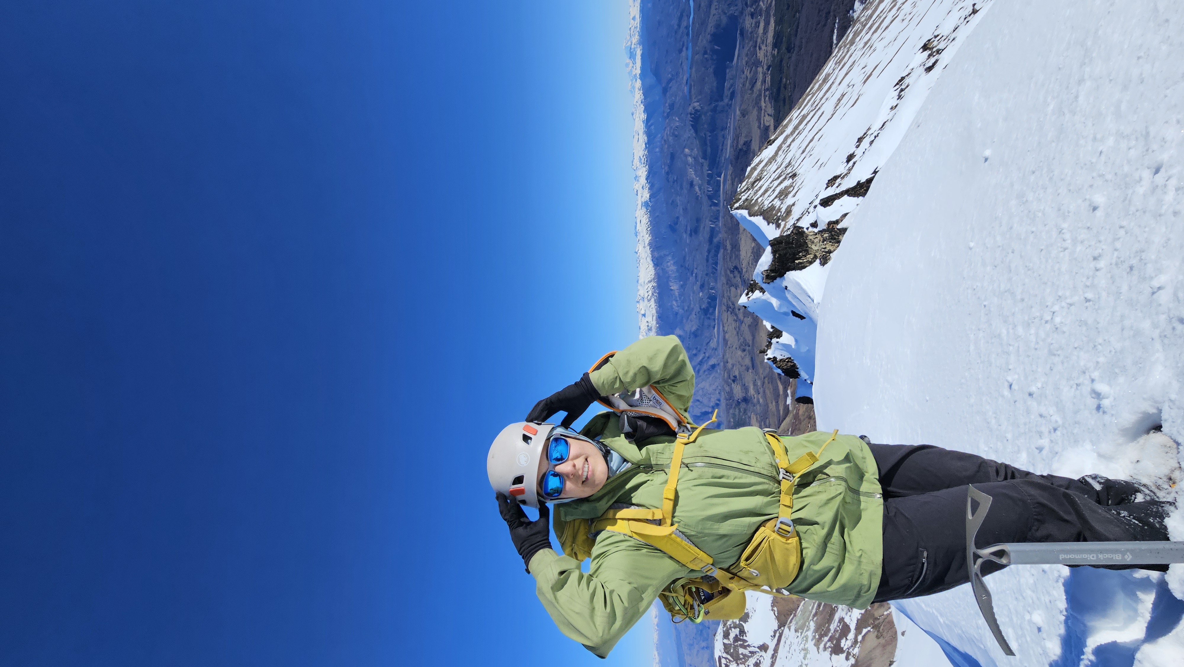 Con ayuda de nuestros piolets e intentando de no botar tantas rocas, logramos pasar de las canaletas clase IIII al filo/arista per se de la cumbre, con una amigable inclinación y poca corniza; una vista fenomenal y un dia favorablemente sin viento; hicimos cumbre y luego retornamos aun lugar un pocás cubierto para realimentarnos antes de la bajada.
