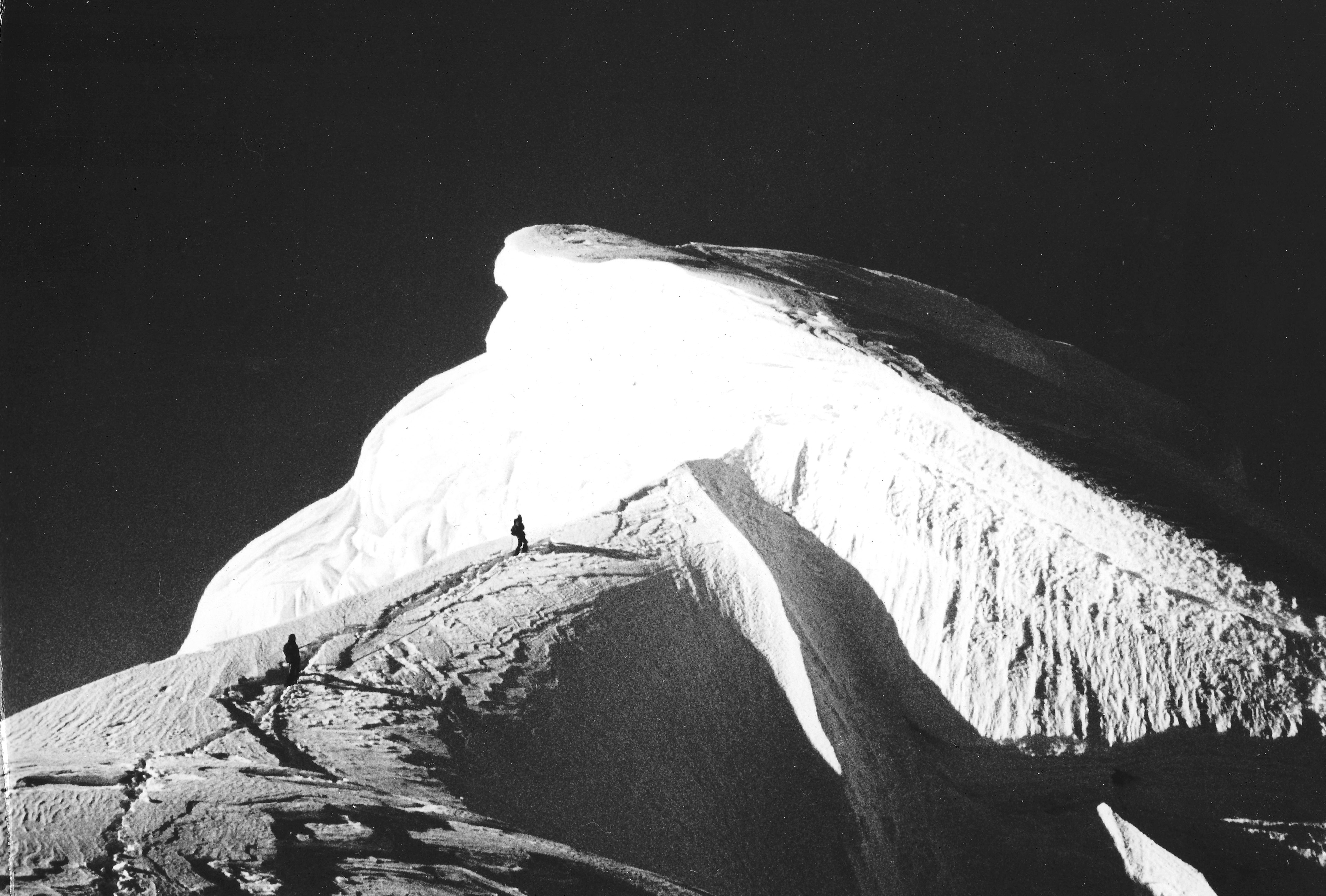 Nuestra ascensión pretendía ser la segunda absoluta tras la original de 1961. Seguimos la misma ruta pero no llegamos a la cumbre debido a la imposibilidad de escalar un muro de nieve justo debajo de ella. La montaña es bellísima. El glaciar en su base estaba extremadamente agrietado y los seracs justo debajo del Espolón SE complicados de atravesar. La mayor dificultad se concentraba en tres muros de nieve justo debajo de la cumbre. Escalados dos de ellos, la falta de material nos impidió superar el tercero y alcanzar el punto somital.