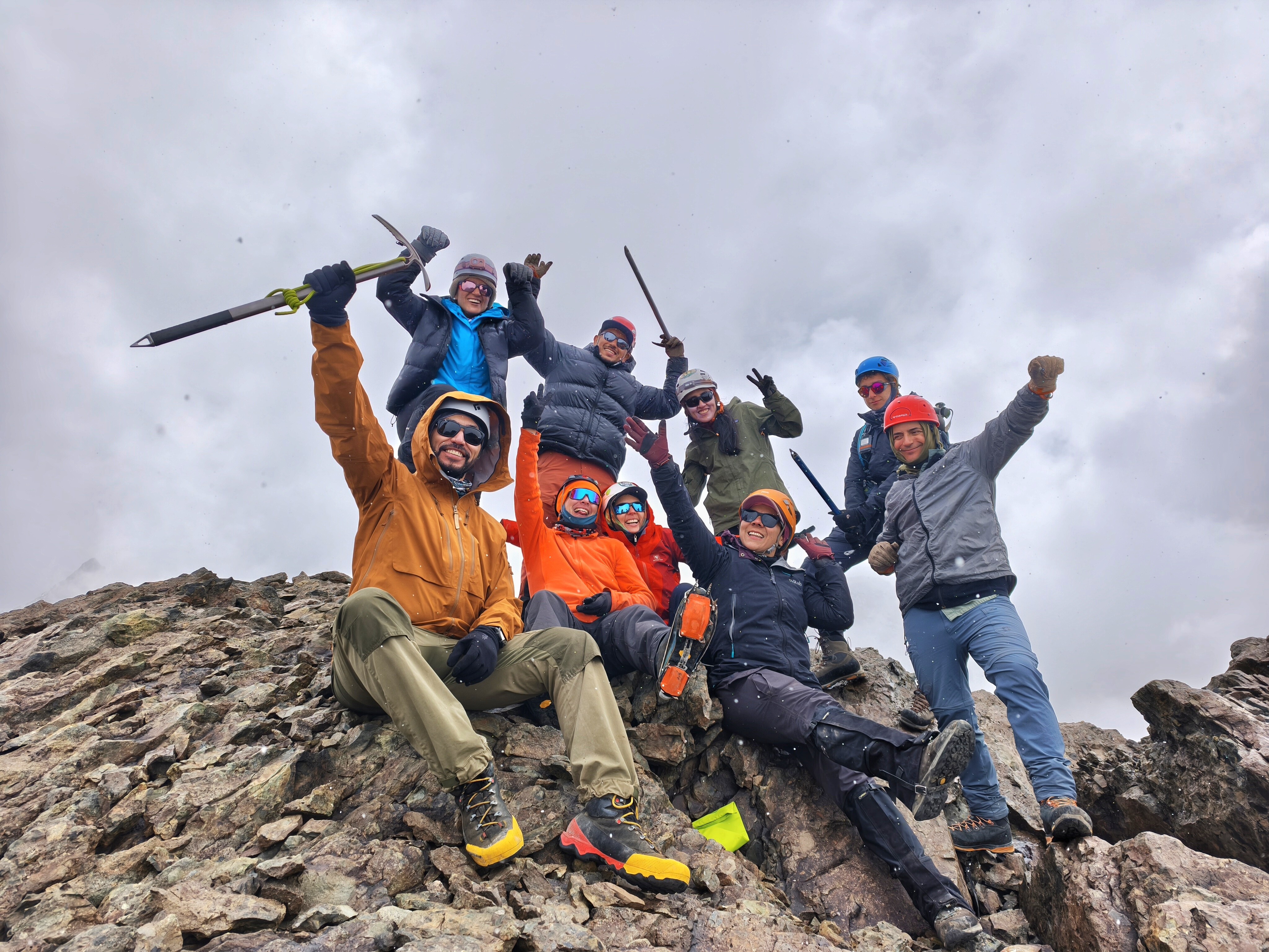Aunque en la segunda jornada el clima nos arrojo nieve y cambiaba de manera drástica a nubosidad y despejado de un momento a otro, nos dió el tiempo de llegar a cumbre y con una buena estabilidad casi sin ráfagas de viento. Fue un ascenso desafiante a base de toma de decisiones, teniendo como protagonista las condiciones climaticas pero logrando cumbre con la cordada completa.