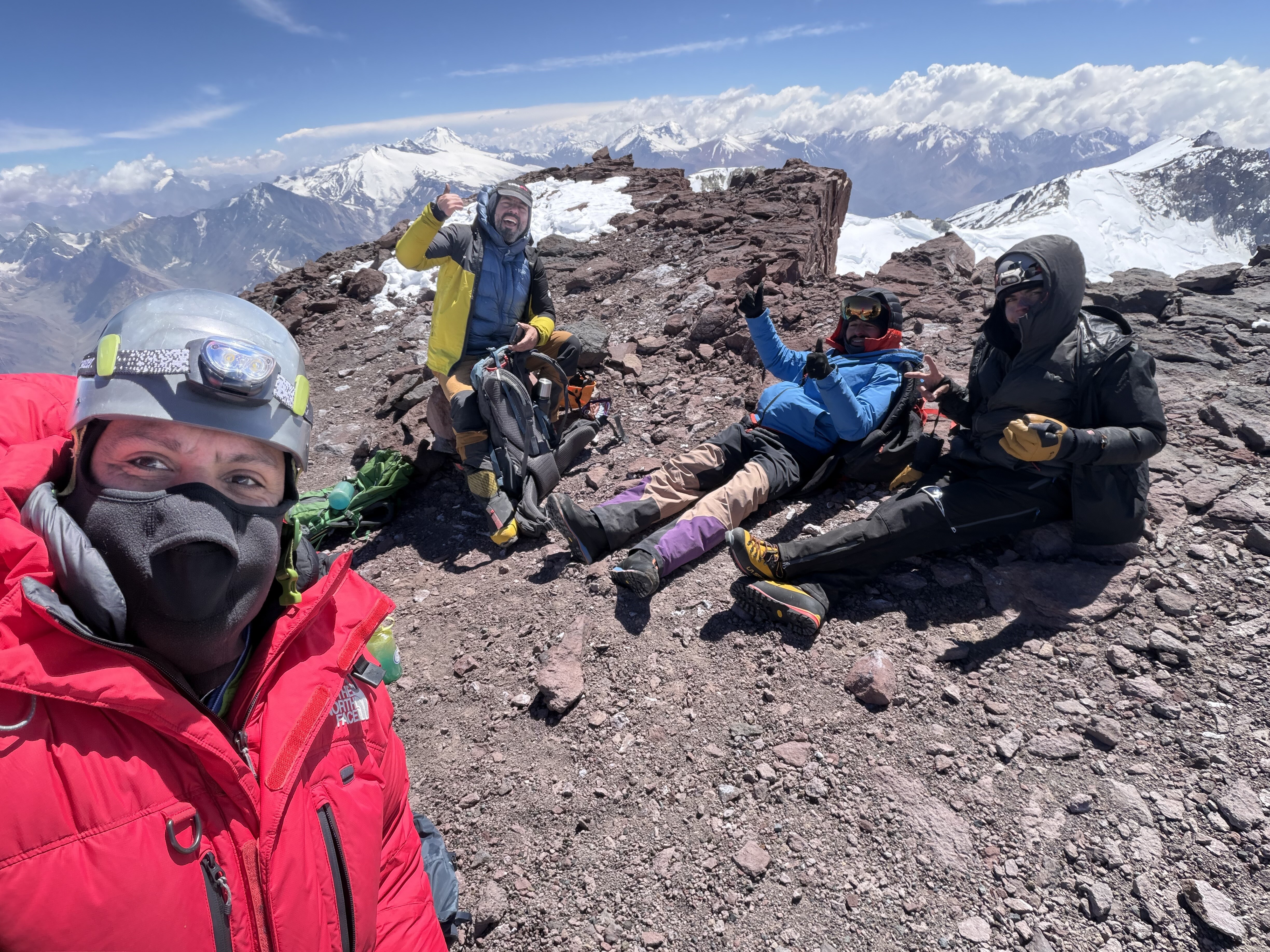 Hermosa ruta, jornadas largas de caminata saliendo desde cabrerio y llegando el primer día un poco más arriba de las lajas donde se encontró agua de deshielos. Segundo día hasta los 4800 msnm. Tercer día cruce del portezuelo y montando campamento en la base del cerro Marmolejo, hermosa ruta con un glaciar en esa época entero y con grietas claramente visibles. Cuarto día salimos a cumbre 1 am fuertes vientos casi ninguna opción de proteger del viento durante el ascenso. Quinto día salida desde la base de cerro en dirección a plantat jornada extremadamente agotadora, tomamos la opción debido al pronóstico de vientos subir por la morrena, en caso de haber condición favorable a la mejor opción es regresar por el glaciar.