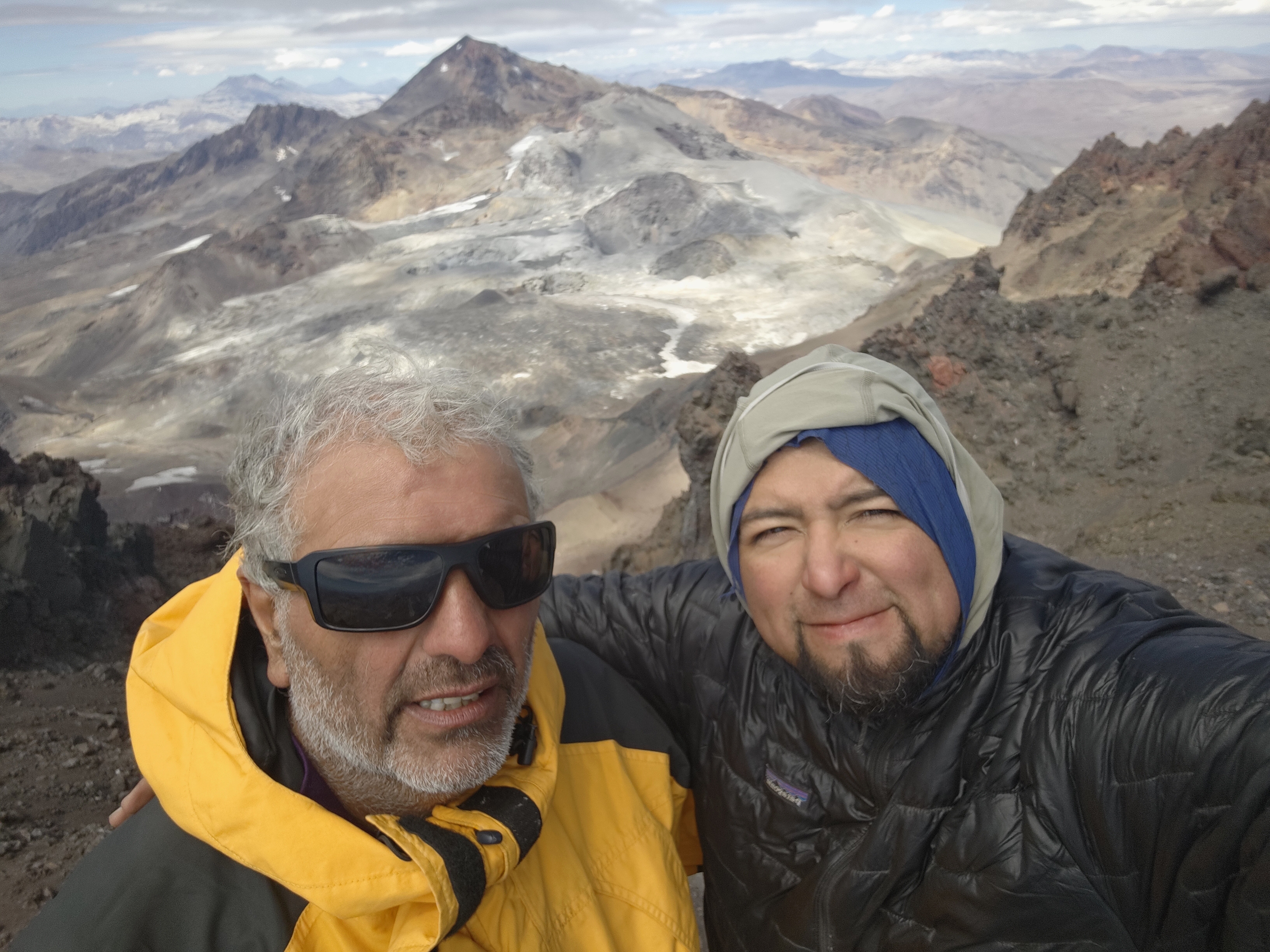 El 1er. día llegamos a los 3.000 msn.m. y al 2do. día dado el mal clima (nubes que tapaban la montaña completa), decidimos esperar un día más y al 3er. día hicimos cumbre con un viento que calculamos entre 50 y 60 Km. por hora. Me pareció un volcán de dificultad elevada, sobre todo por la última parte rocosa y con poco margen para cometer un error.