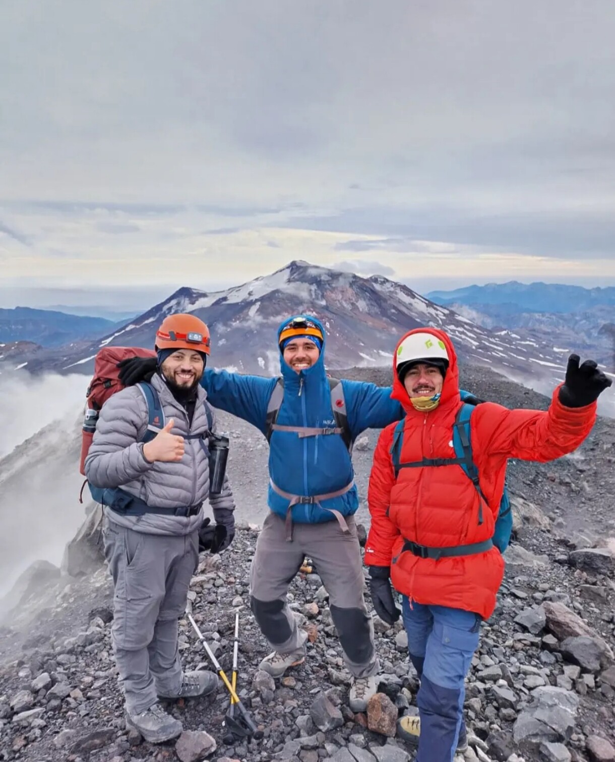 •Que tal andinistas mi nombre es Sergio CJ, con fecha 27 de Marzo del 2024, junto a un grupo de amigos todos de Los Ángeles y alrededores decidimos realizar la Cumbre del Volcán Nevado de Chillán situado a 3212msnm en la región de Ñuble en 01(una) jornada, la cual resultó un éxito y un reto quienes les motiva subir volcanes. COMENCEMOS: •La ruta comenzó a las 05:00am desde el famoso sendero “Camino a Shangri-la” ubicado en el Sector Las Trancas a unos 1390msnm es recomendable el uso de linterna frontal y seguir alguna apps con la ruta ya trazada. •Luego avanzamos por el sendero de Shangri-la hacia un un punto que tiene por nombre “Acceso a Refugio Waldorf”, continuamos hasta alcanzar el “Refugio Waldorf” 1950msnm a las 07:30am. •Continuamos la ruta bordeando un estero afluente del Río Chillán, luego seguimos un filo en dirección al Volcán Colcura (Cráter Vidaurre) a 2860msnm llegando al punto a las 11:50am donde descanzamos durante largos minutos (ESTE TRAMO ES EL MÁS DURO DE LA RUTA expuesto al sol y viento sumado al desnivel y acarreo por parte de la escoria volcánica). •Desde el Cráter Vidaurre avanzamos por el filo en el extremo Este (a la derecha), justo en frente subimos una pendiente arenosa y llegaremos a un pequeño glaciar en el cual realizamos transición a CRAMPÓN Y PIOLET. •Posterior al Glaciar encontrarán el Cráter del Volcán Nevado de Chillán, el cual decidimos bordear por el extremo Suroeste donde se pierde la vista a la cumbre y en ese momento en lugar de avanzar hacia lo que parece ser el punto más alto a la izquierda, se debe avanzar levemente por la ladera en diagonal hacia el Norte (a la derecha según dirección de avance) evitando avanzar demasiado, puesto que la cumbre del Volcán Nevado de Chillán se encuentra inmediatamente sobre ella a 3212msnm. •Alcanzamos la cumbre a las 15:15pm acumulando: MARCHA EN ASCENCIÓN: 10:15:00 hrs DESNIVEL POSITIVO: 1800mts •La cumbre está representada por una estructura en forma de trípode con un Piolet donde existen dos cajas metálicas que contienen cuadernos para dejar su testimonio, ofreciendo una gran vista panorámica. •En la VUELTA AL HORIZONTE se puede apreciar: Cerro Pirámide Vn. Chillán - Vn. Chillán Viejo Vn. Antuco - Sierra Velluda Valle Las Trancas DESCENSO •Iniciamos el descenso esde la Cumbre a las 16:15pm y llegamos al Sendero Shangri-la a las 21:20pm que coincide nuestro punto de inicio y término de ruta. •DATOS DE MARCHA TIEMPO TOTAL DE RUTA 16:22:10 hrs DISTANCIA RECORRIDA 24,7 kms TIEMPO EN MOVIMIENTO 11:30:25 hrs DESNIVEL ACUMULADO 2016,9 mts