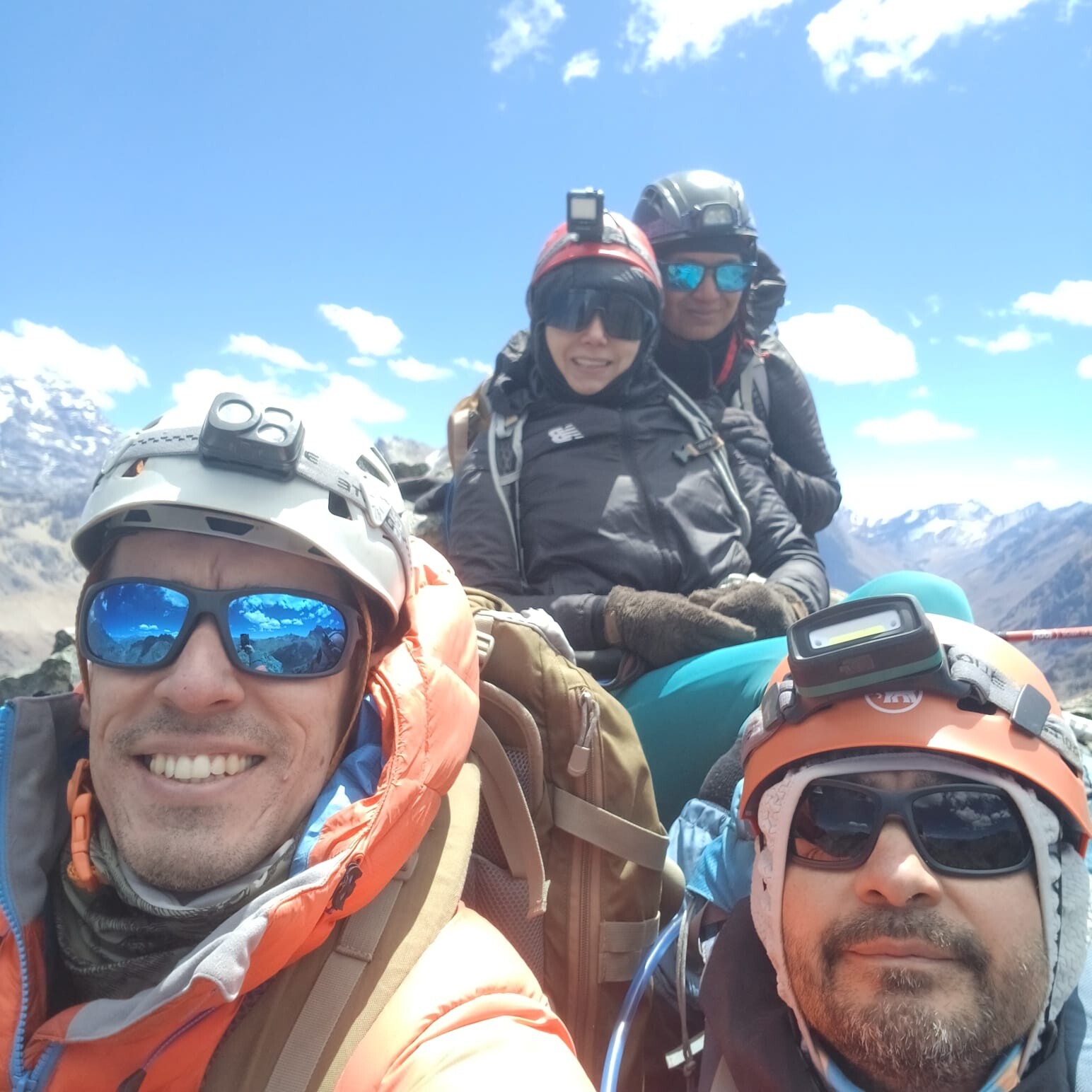 Aproximamos a través de la hermosa Quebrada de Matienzo, para acampar bajo la Quebrada de Mistay. Para el día siguiente ir con dirección al Peñas Amarillas, al llegar a la base de la montaña, nos dimos cuenta que se podía subir por su ladera este, para intentar salir por dicha arista, tuvimos que sortear un fuerte acarreo de aproximadamente 40°, luego vino una canaleta del cual bajamos hacia la vertiente chilena, e intentar poder conectar con el filo cumbrero, pasamos varios traverses, nuevamente subir por unas dos canaletas y conectamos con la cumbre, hubo pasos de escalada simple u cumbre.