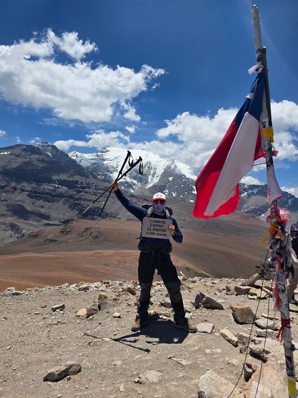La subida final se siente: altura, viento y piernas, pero es directa y mental. La cumbre del Pintor siempre pega distinto, amplia, con sensación real de cordillera alta. Arriba, tiempo justo para hidratar, comer algo y disfrutar la vista, sabiendo que aún queda todo el descenso.
