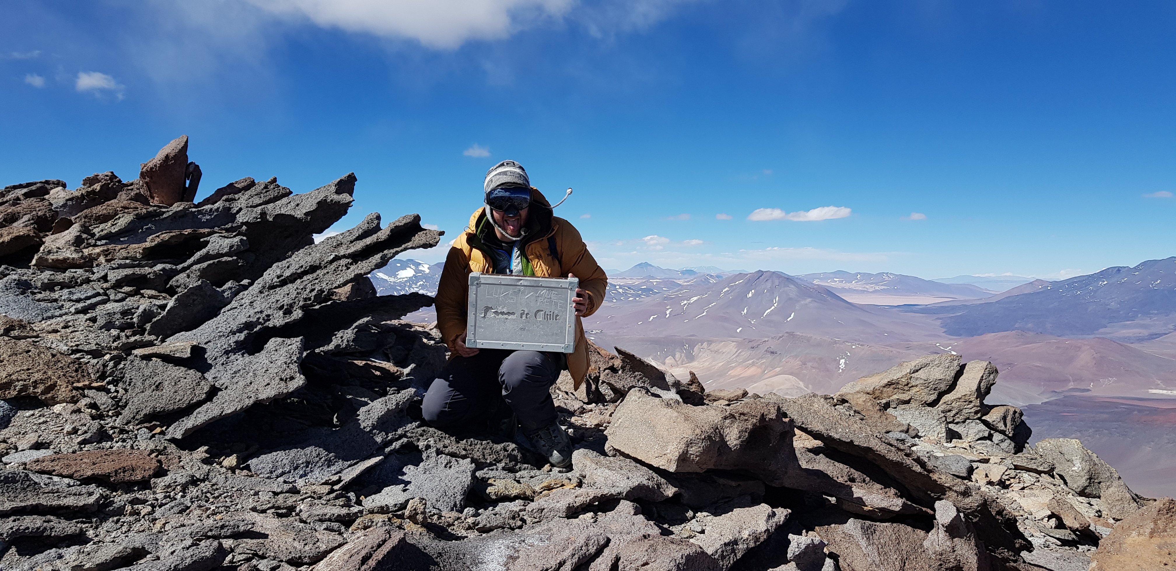 Excelente panorámica Salimos de madrugada desde el refugio de Laguna Verde, y comenzamos a subirlo a eso de las 05:00 am. Nos saltamos el campamento alto, por lo que fue una extensa jornada, con mucho desnivel por superar bajo un terreno mixto en buen estado. En promedio, alrededor de las 16:0o hicimos cumbre.