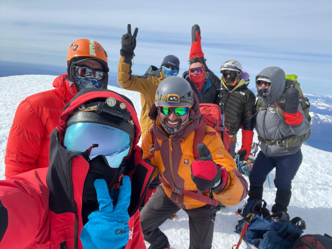 Cumbre en el Volcán Lanín, un grupo de siete amigos logramos la cumbre por la ruta chilena, en una salida inolvidable para celebrar las Fiestas Patrias en lo más alto. El ascenso fue exigente, pero siempre acompañado de buen ánimo y compañerismo. En la cumbre saqué la chupalla y, junto a María Jesús Arriagada, bailamos un pie de cueca para celebrar el momento. Las risas no pararon y la alegría fue total. Una cumbre distinta, llena de identidad, amistad y recuerdos que quedan para siempre.