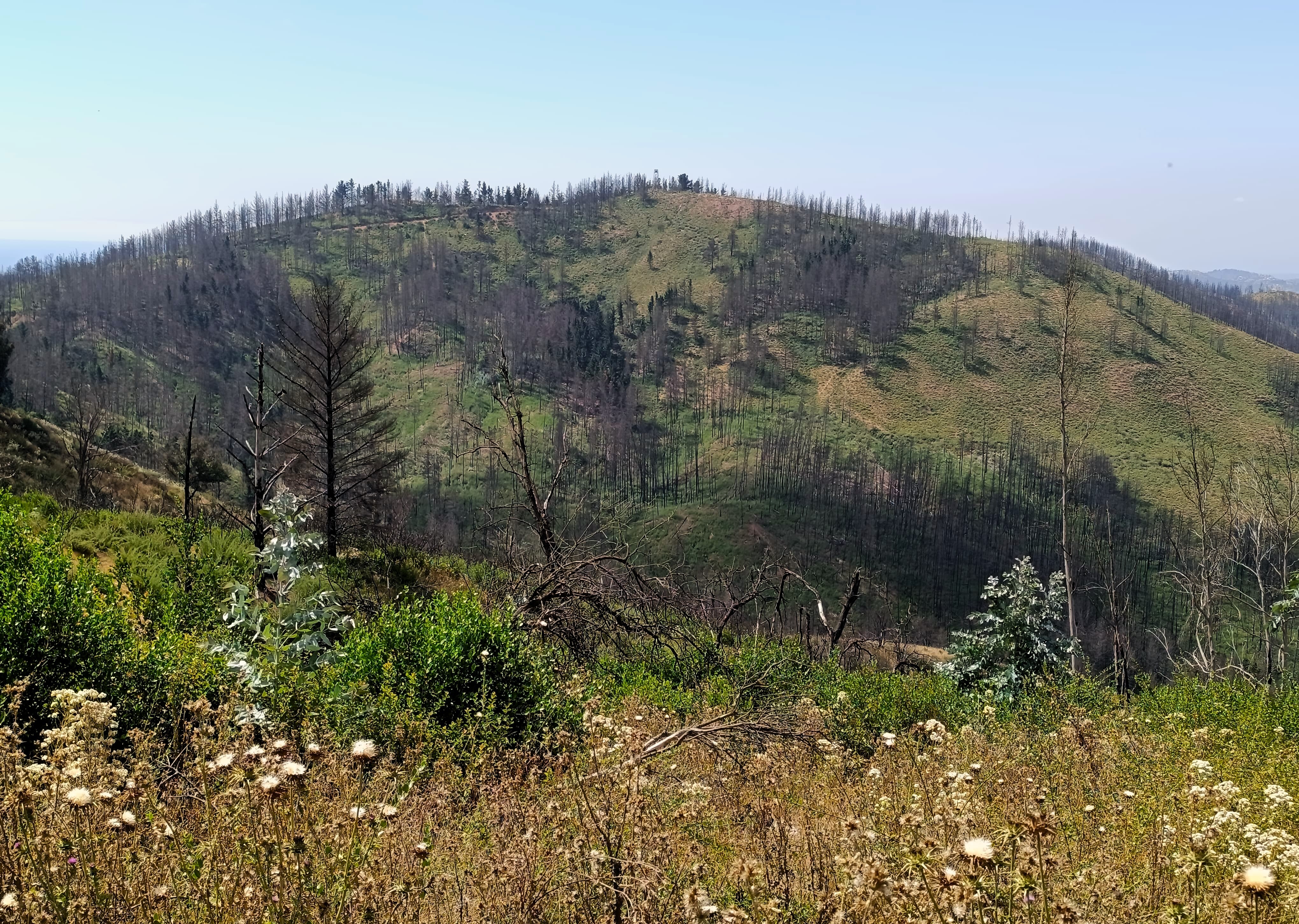 Nota: Este cordón de cerros fue uno de los principales afectados por el mega incendio ocurrido en febrero de 2024, el cual consumió gran parte de la vegetación que cubría sus laderas, compuesta hasta ese entonces por pinos y eucaliptus, sin embargo, la pérdida de estos árboles, ha dado paso al resurgimiento del bosque esclerófilo y por dicho motivo, hoy en día, las laderas del Charahuecho se encuentran cubiertas por quilas y uno que otro retoño de árboles nativos como el boldo.