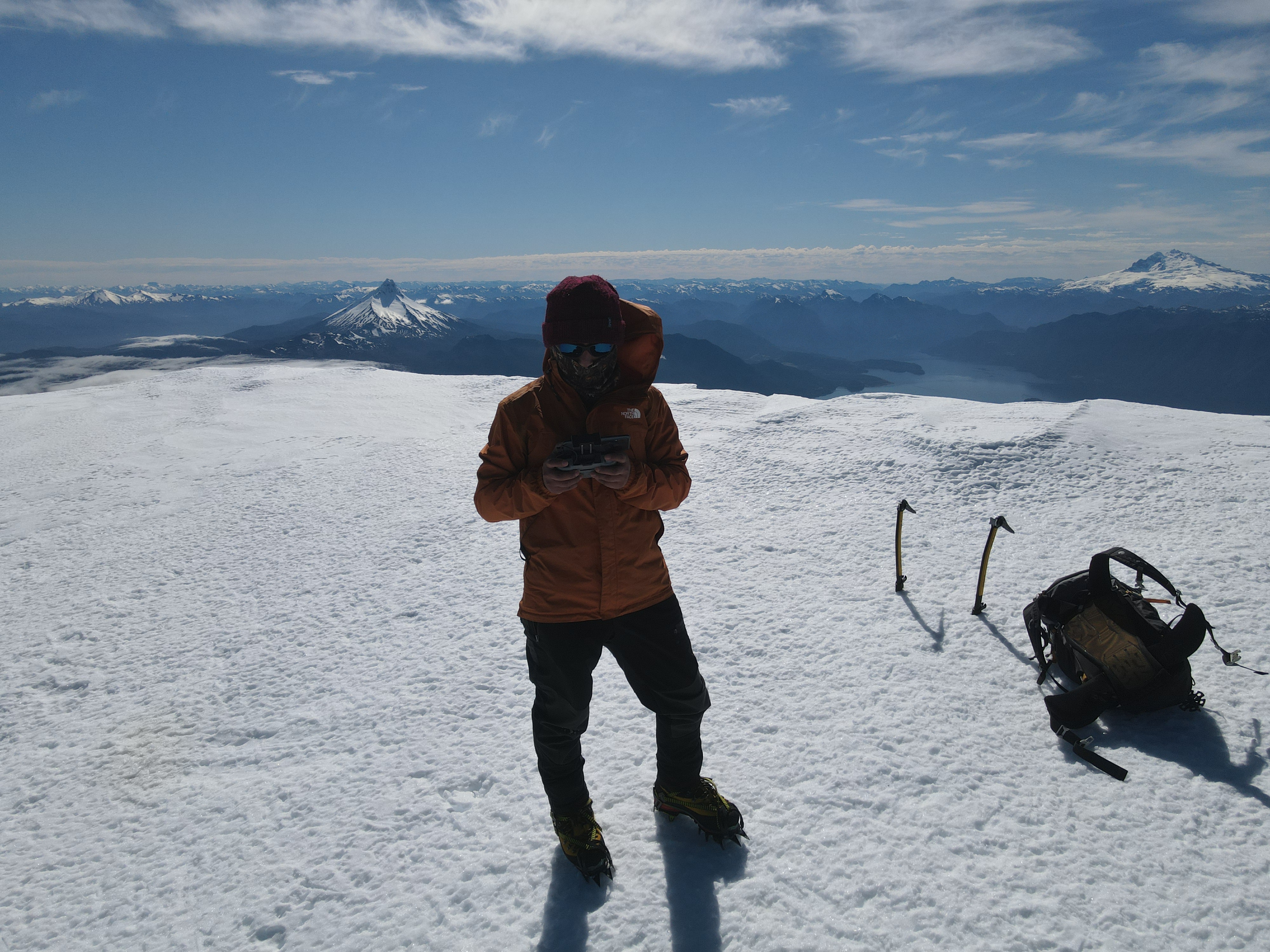 Ascenso en solitario por cara norte. Duermo en el refugio del sector la picada remodelado hace poco que es una maravilla. Salida del refugio (1.078m)05:15 am , llegada cumbre 10:05 am, nieve sobre los 1.700m de buena calidad, la rimaya cumbrera estaba tapada. Resuelvo sin problemas con dos piolet técnicos, bota montaña, crampones, considerar que los primeros rayos del sol dan a esta cara.