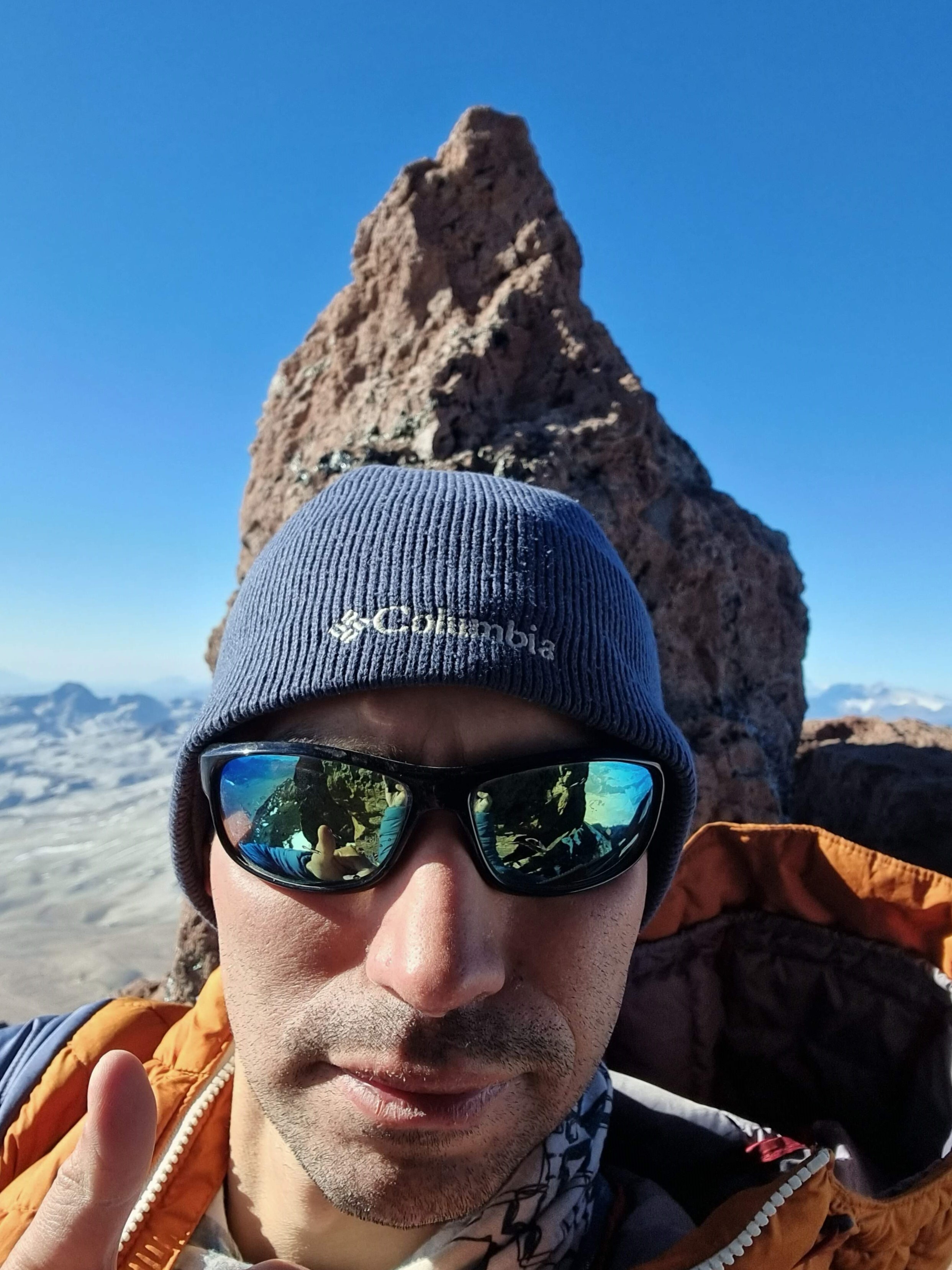 Hice cumbre en solitario en el Cerro Azul, fue una experiencia intensa y muy especial. La jornada estuvo marcada por el entorno volcánico y la inmensidad del paisaje andino, donde cada paso recordaba la fuerza y la historia geológica del lugar. Desde la cumbre, las vistas a las Laguna Caracol y Laguna Redonda hicieron que todo el esfuerzo valiera completamente la pena, como dato solo desde este punto se puede ver la Laguna Invernada, cerrando una ascensión memorable.