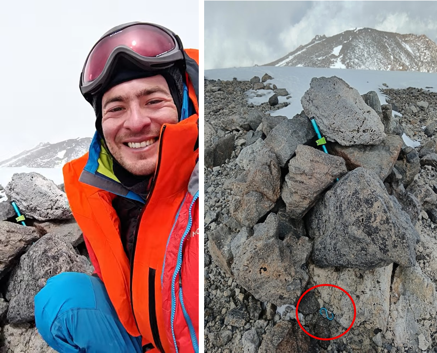 Los 2 días de descanso fueron contemplados inicialmente por la posibilidad de frente meteorológico. Todos los campamentos tuvimos agua líquida. Deje un pequeño mosquetón azul como testigo bajo el monolito de cumbre (cara oeste).