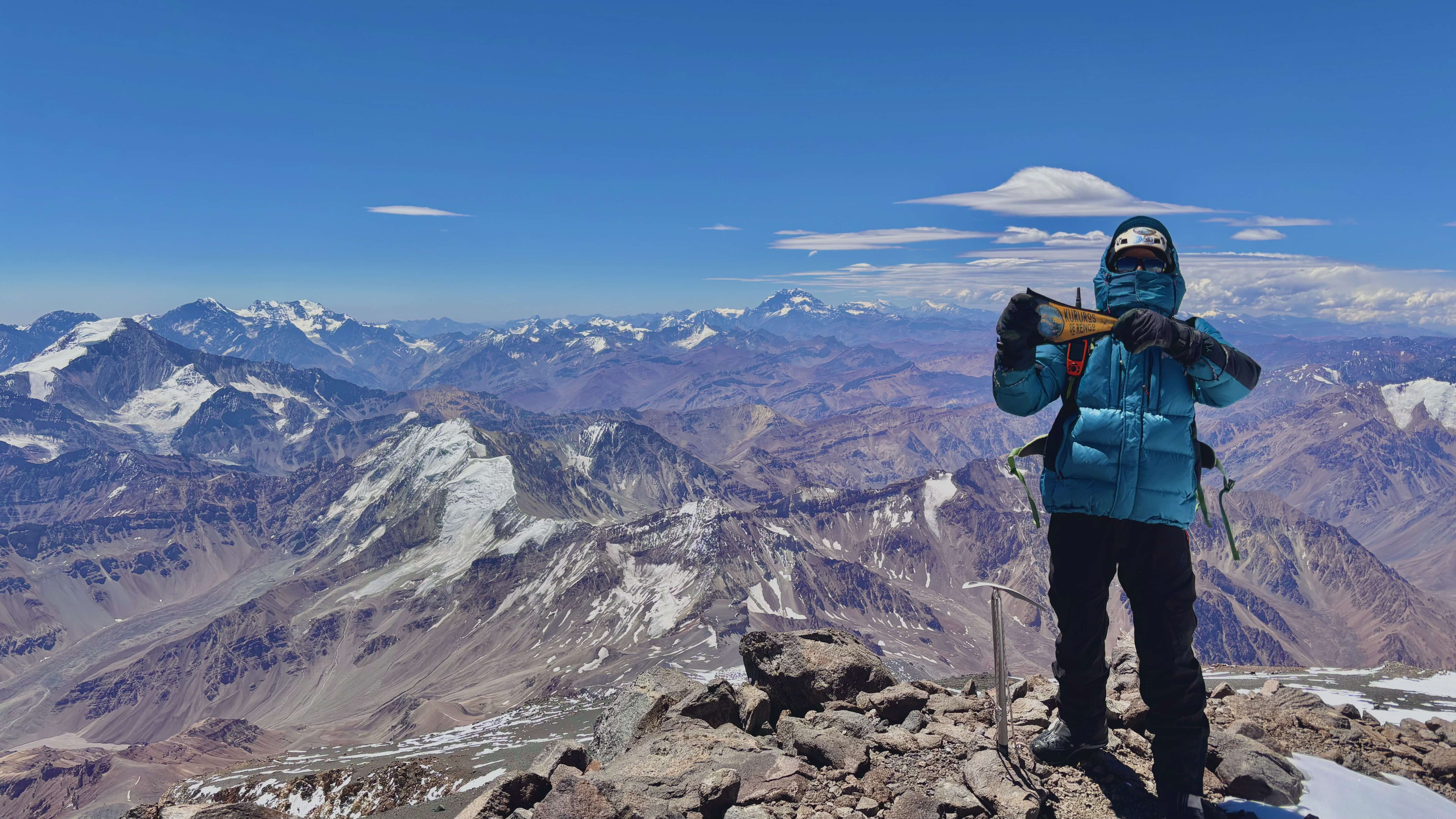 Ascensión desde c2 5.600, 8 horas de Ascensión, por la variante izquierda de la ruta normal, sorteando unos gateos de roca, posterior un traverse y montamos paralelos a una canaleta de unos 15 metros aprox y salimos paralelos enlazar la ruta normal. Variante realizada debido a una tormenta una semana antes que dejó abundante nieve desde los 5mil hacia la cumbre, favorablemente seguimos unas huellas que ayudaron hacer más fácil la progresión. Cumbre norte. 6.550msnm.