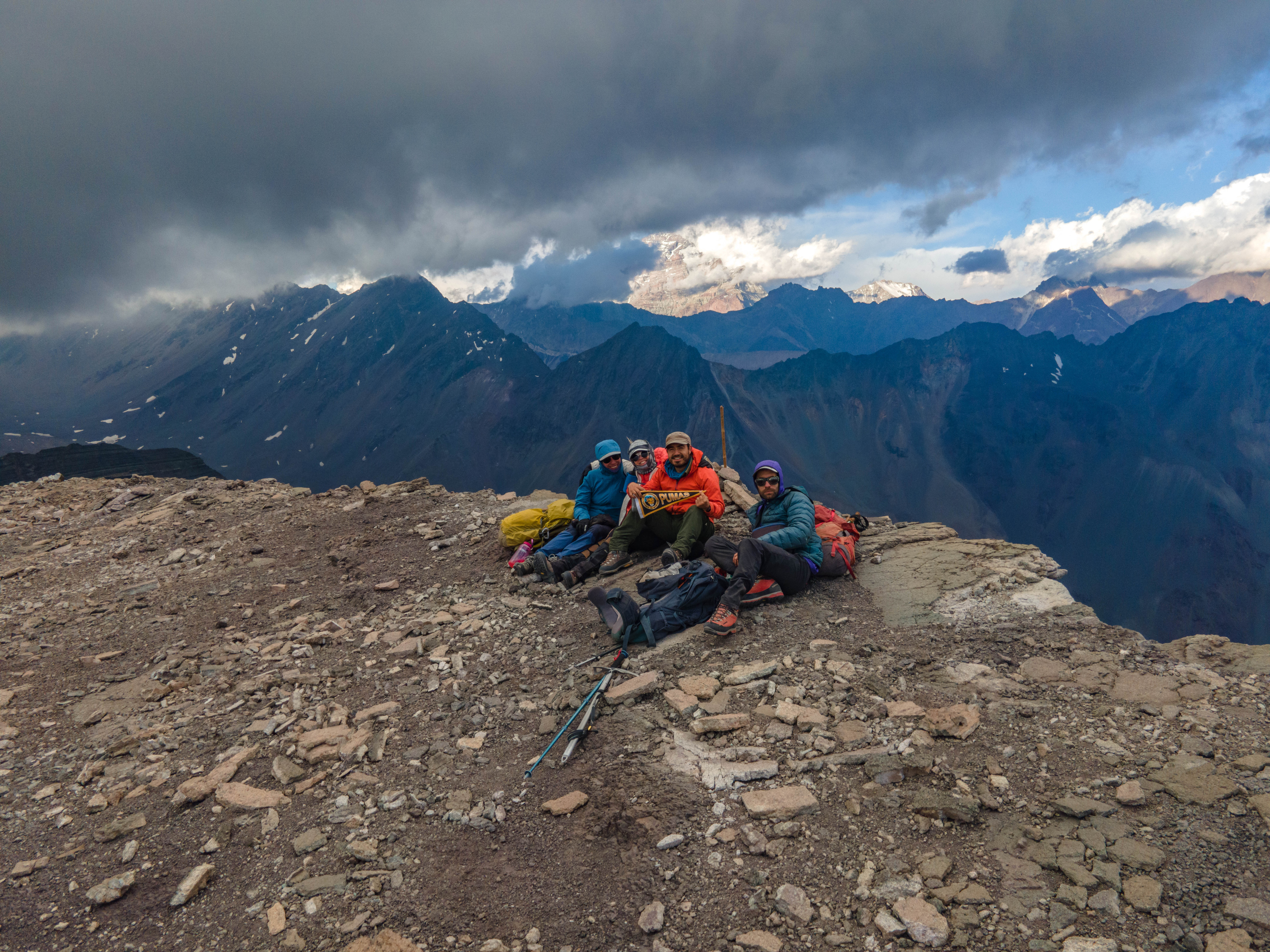 Había agua disponible durante al menos la mitad de la ruta. Luego del portezuelo pasamos unos pocos metros por detrás del filo y luego lo subimos, continuando por ahí hasta la cumbre. Bajamos por un acarreo más directo en vez de volver al portezuelo.