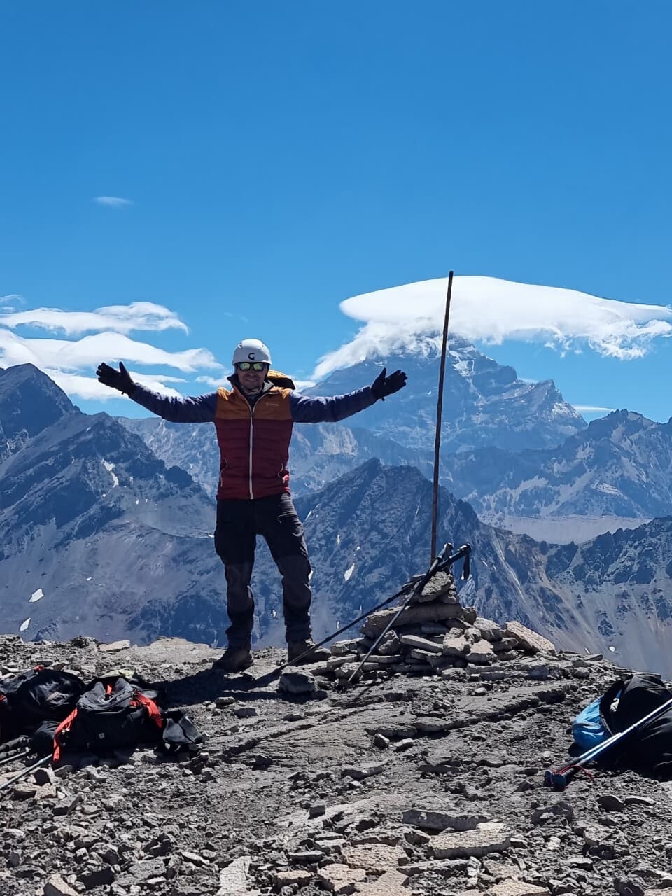 Un grupo de Seis amigos alcanzamos la cumbre del Cerro Meseta Norte por Ruta Oeste vía Portezuelo Sur, en una jornada marcada por el compañerismo y las grandes vistas. Desde la cumbre se aprecia muy de cerca el Cerro Parva del Inca, y en el horizonte domina la escena el imponente Aconcagua, recordándonos la magnitud de la cordillera. Durante el ascenso también tuvimos el privilegio de observar guanacos en su entorno natural, un regalo más de la montaña. Experiencia completa, de esas que se disfrutan paso a paso y quedan grabadas en la memoria.