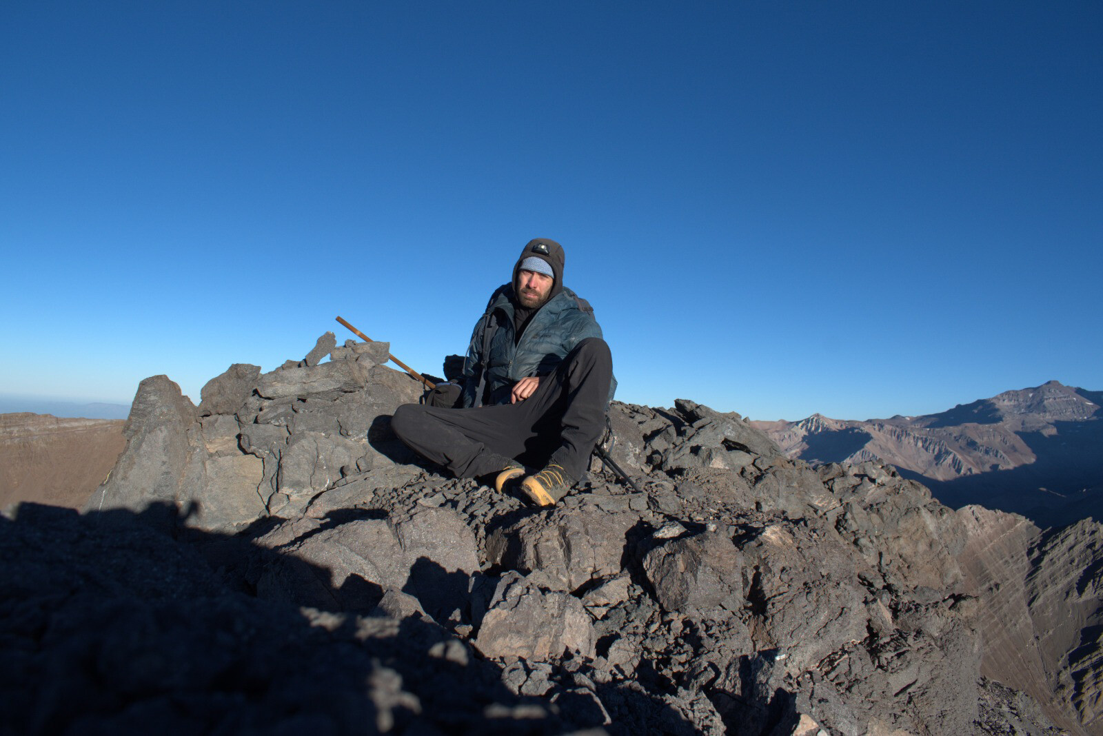 Lindo cerro sin complicaciones tecnicas, desde el paso del Quempo bajé a la quebrada de la Jarilla, monté un vivac a 3500 y desde ahí 2 horas a la cumbre por la canaleta.