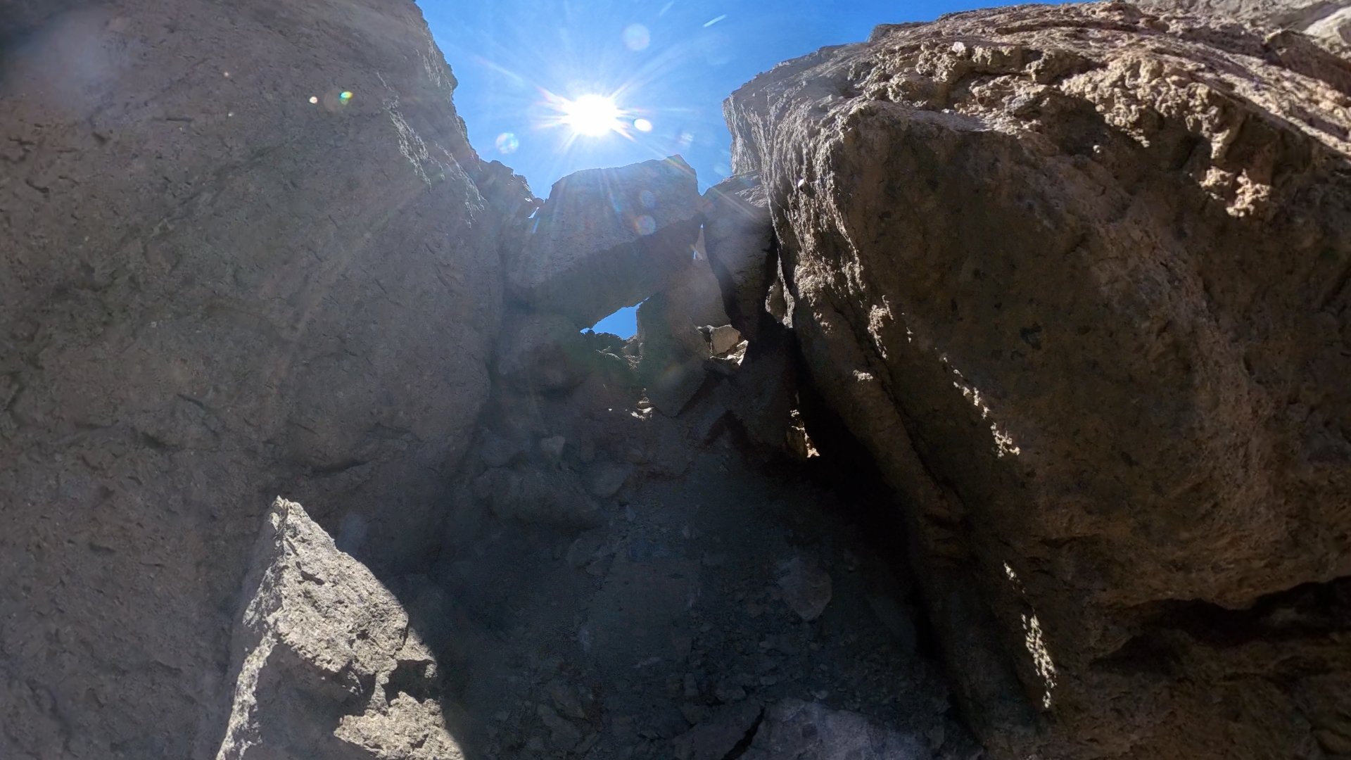 Aunque la diferencia de altura entre el campamento 3 del Laberinto Piroclástico y la cumbre principal del Cerro Agujereado (la más alta) es de unos 20m de desnivel, el terreno obliga a una dinámica continua de subidas y descensos, aplicando las mismas técnicas utilizadas en el tramo anterior: manejo de cuerda, evaluación de anclajes en roca frágil y lectura fina del terreno. Los metros finales antes de alcanzar el filo cumbrero del Agujereado son especialmente técnicos, con pasos de escalada en roca volcánica fracturada y maniobras de aseguramiento necesarias para sortear los últimos muros y estrechos corredores que preceden a la cumbre.