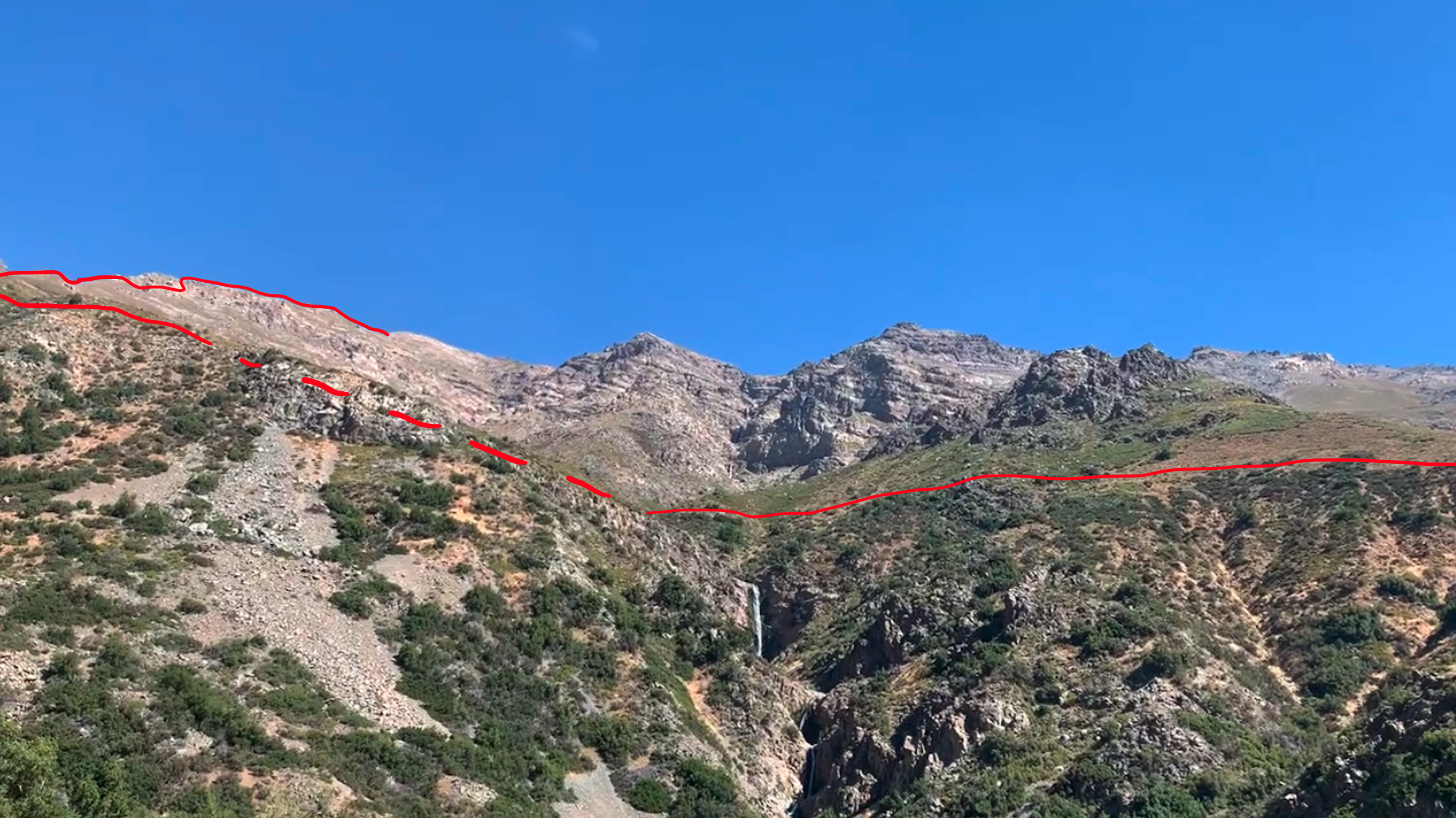 Una vez en el filo Oeste del cerro Sesquicentenario, se continúa avanzando hacia el filo principal del cordón en dirección Oeste por unos 2km aproximadamente, hasta la base norte del cerro Alto del Retamal (3200m aprox) (Ver foto 30). Este tramo combina secciones de roca firme, pedregal suelto y pendientes irregulares, sin presentar grandes dificultades técnicas, aunque sí exige atención en tramos angostos y la presencia de roca suelta.