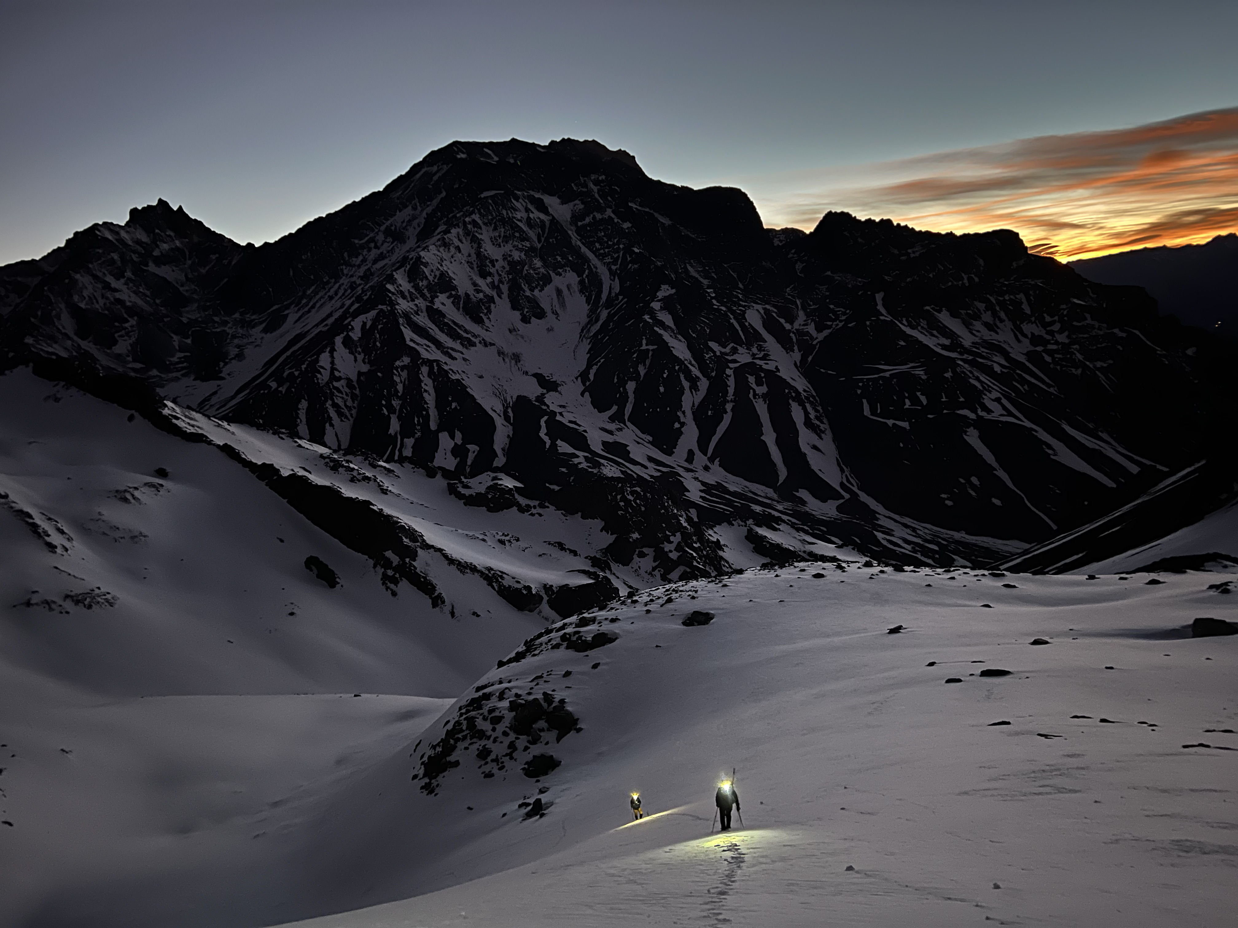 En caso de realizar el ascenso en un día, se debe comenzar muy temprano. Con el calor, la nieve se vuelve inestable y hay desprendimiento de material.