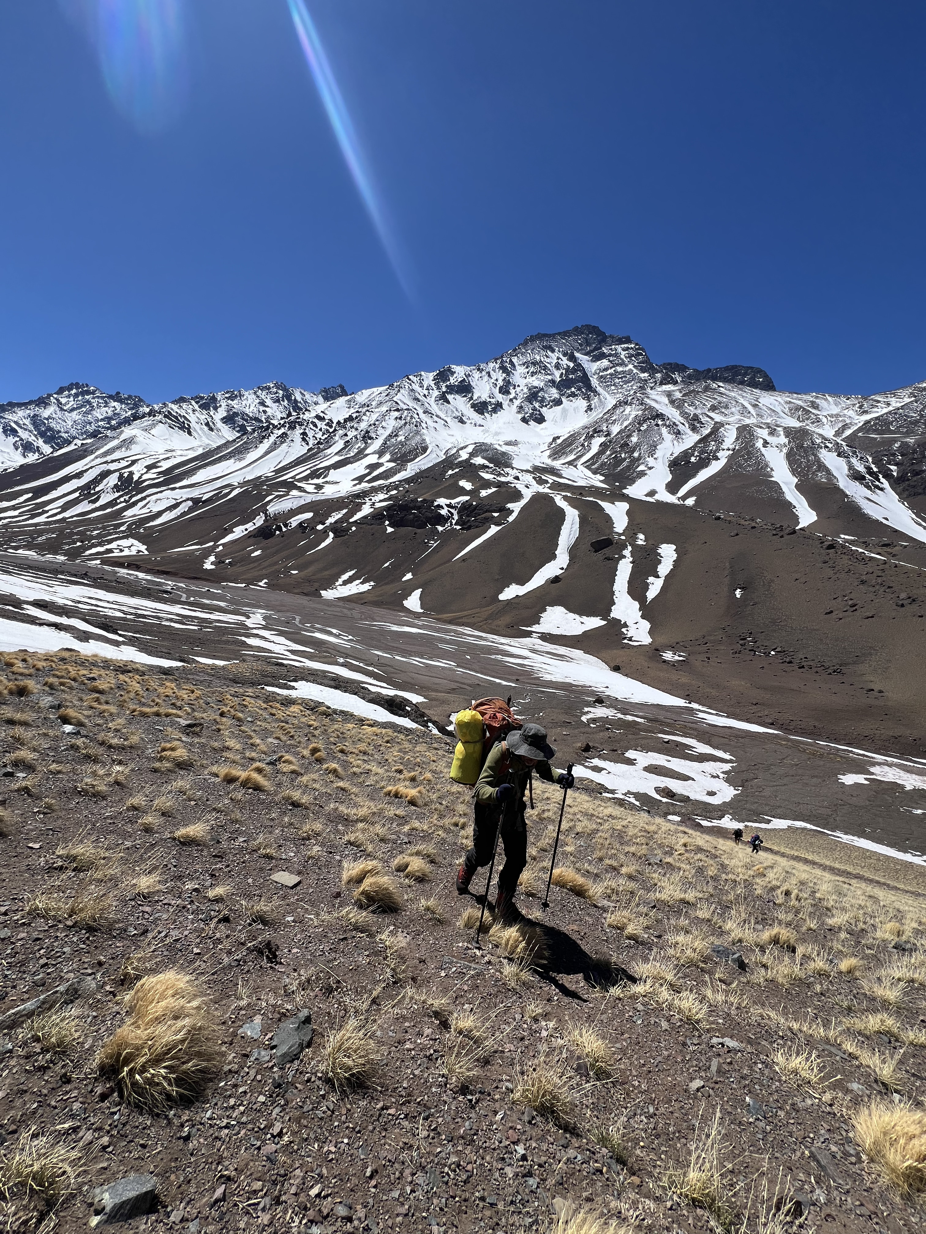 Desde el auto al campo base, considerar 1h 40' aproximadamente y 3,5km de caminata.