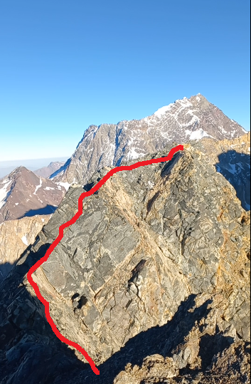 • Posiblemente una ruta más segura y sencilla para el ascenso puede ser la ruta usada para descender, donde la calidad de la roca es levemente mejor y el torreón es más corto.