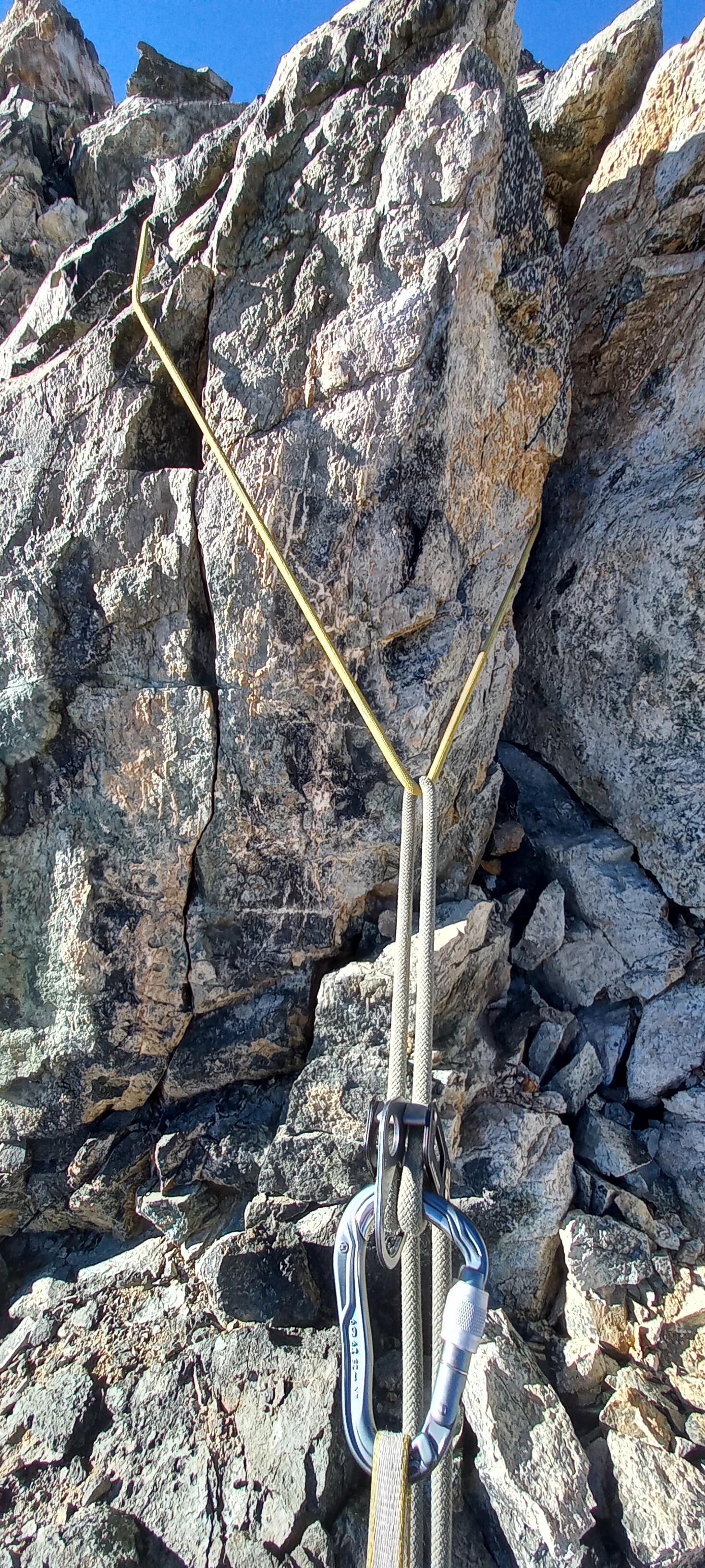 • Equipo de escalada-rapel: arnés, cuerda 60m, cordines varios, materiales para rapelar, pitones y stoppers (estos últimos podrían ser de utilidad en algún momento si se encuentran lugares apropiados para proteger).