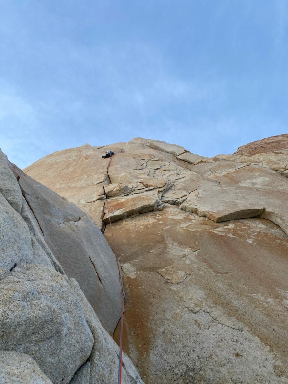 - L2 / L3 - 60m: es posible realizar estos dos tramos en un solo largo. Parte con una fisura de manos hasta llegar a una terraza con una pequeña pared vertical con clavos (A1). Luego de este tramo, seguir por una escalada de 5.10a/b hasta una terraza medianamente inclinada. Acá, se puede asegurar cómodamente el siguiente largo.